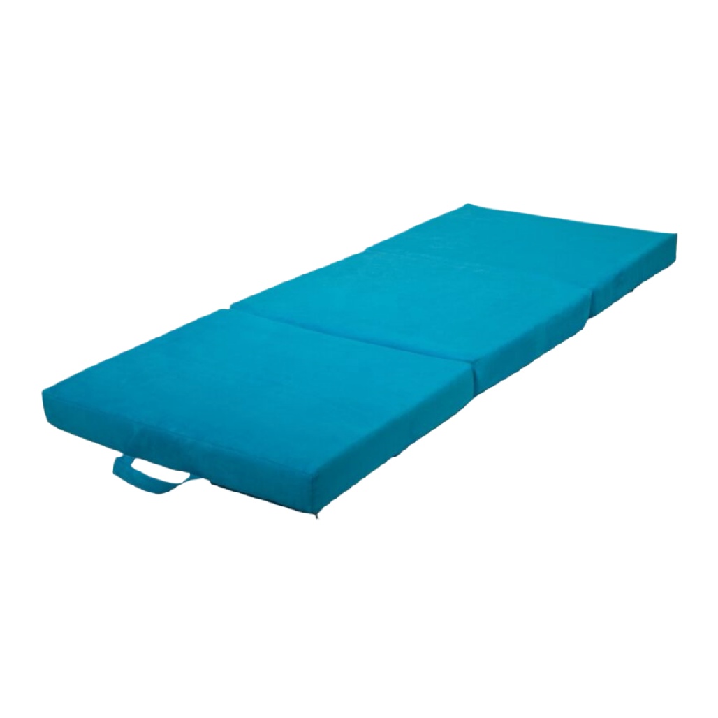 Matelas pliant en couleur turquoise pour un confort optimal.