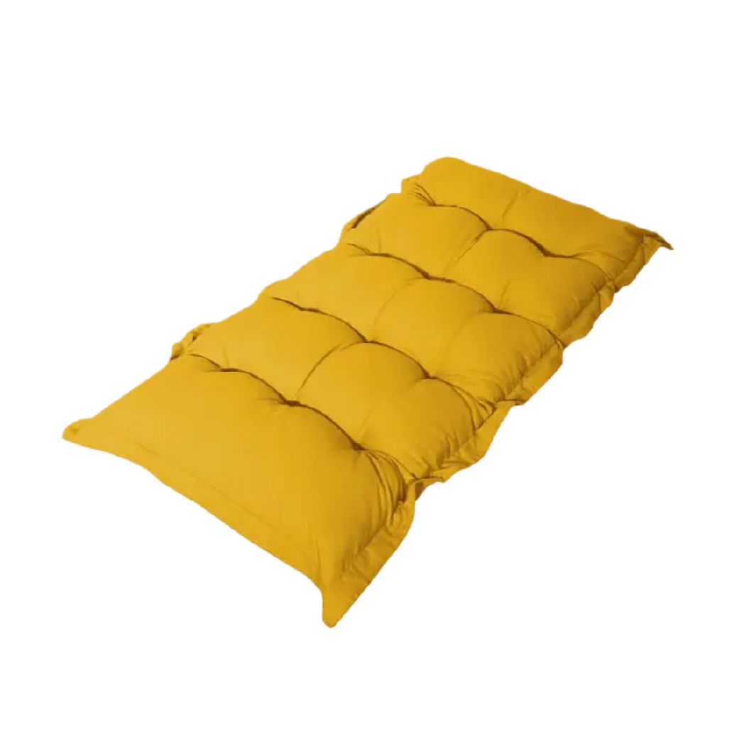Coussin de sol en velours jaune avec rembourrage épais et design matelassé.