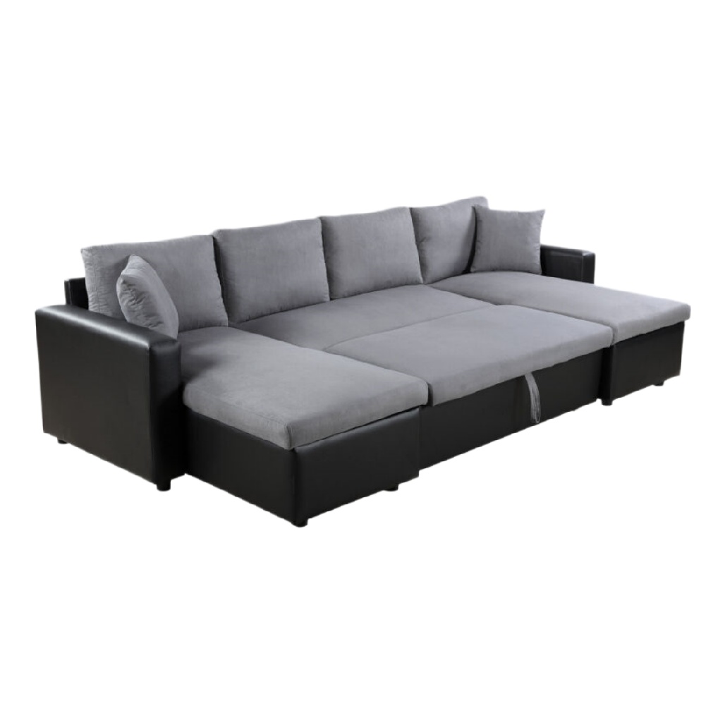Canapé d'angle moderne en tissu gris et simili cuir noir